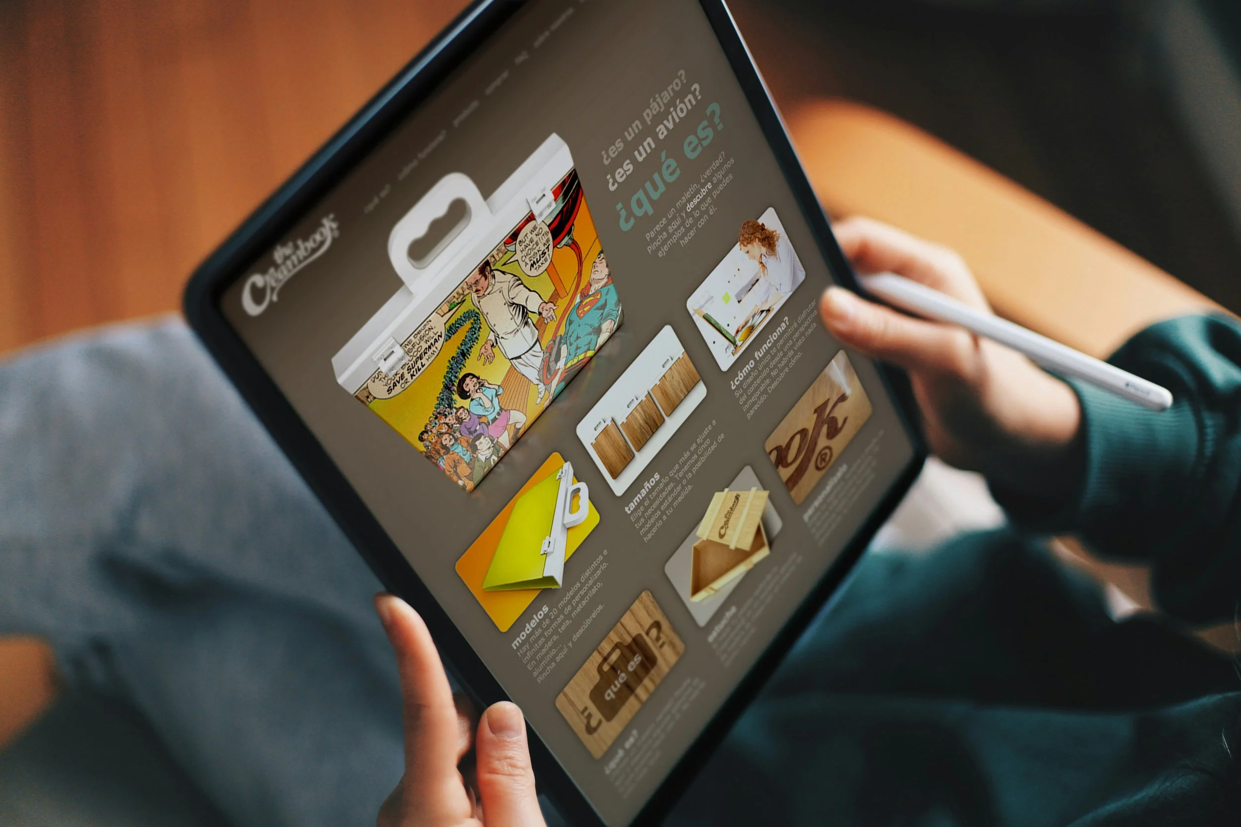 El objetivo, crear el álbum fotográfico más exclusivo del mercado. Fabricado en sólido aluminio y madera, prometía ser una forma diferente y sofisticada de presentar un portfolio, book o álbum para fotógrafos, diseñadores o cualquier otra persona que deseara conservar o mostrar sus fotografías más preciadas. Maletín y a la vez soporte, permitía abrirse y exponer su contenido en el ángulo perfecto. El proyecto incluyó el desarrollo de la marca, identidad visual, packaging, fabricación, etc.